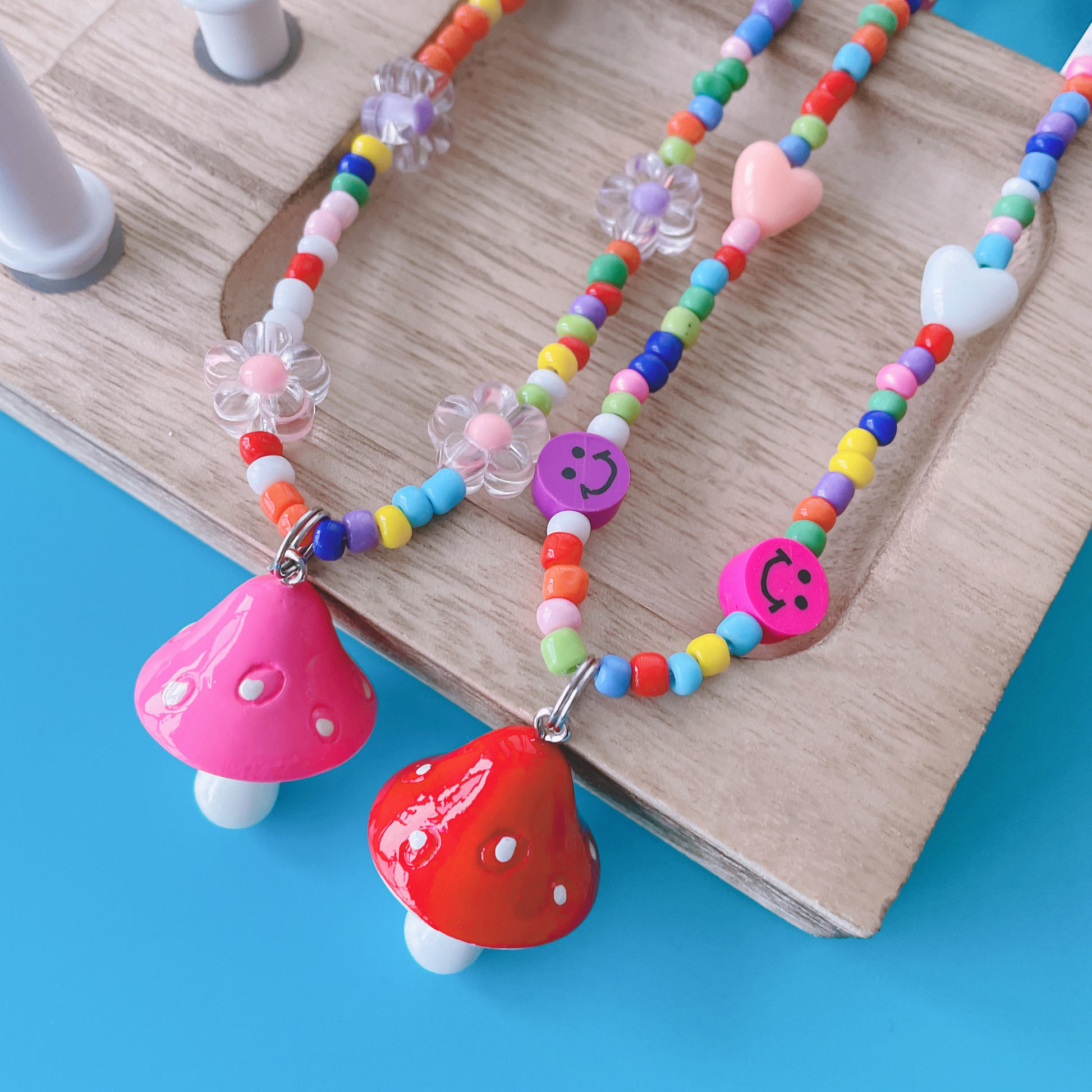Kim Murrell I purchased these kid necklaces for myself, even though I'm an adult. They reminded me of the Super Mario Brothers movies and I'm also a kid at heart. These mushroom necklaces look better in person and I adore the homemade style.