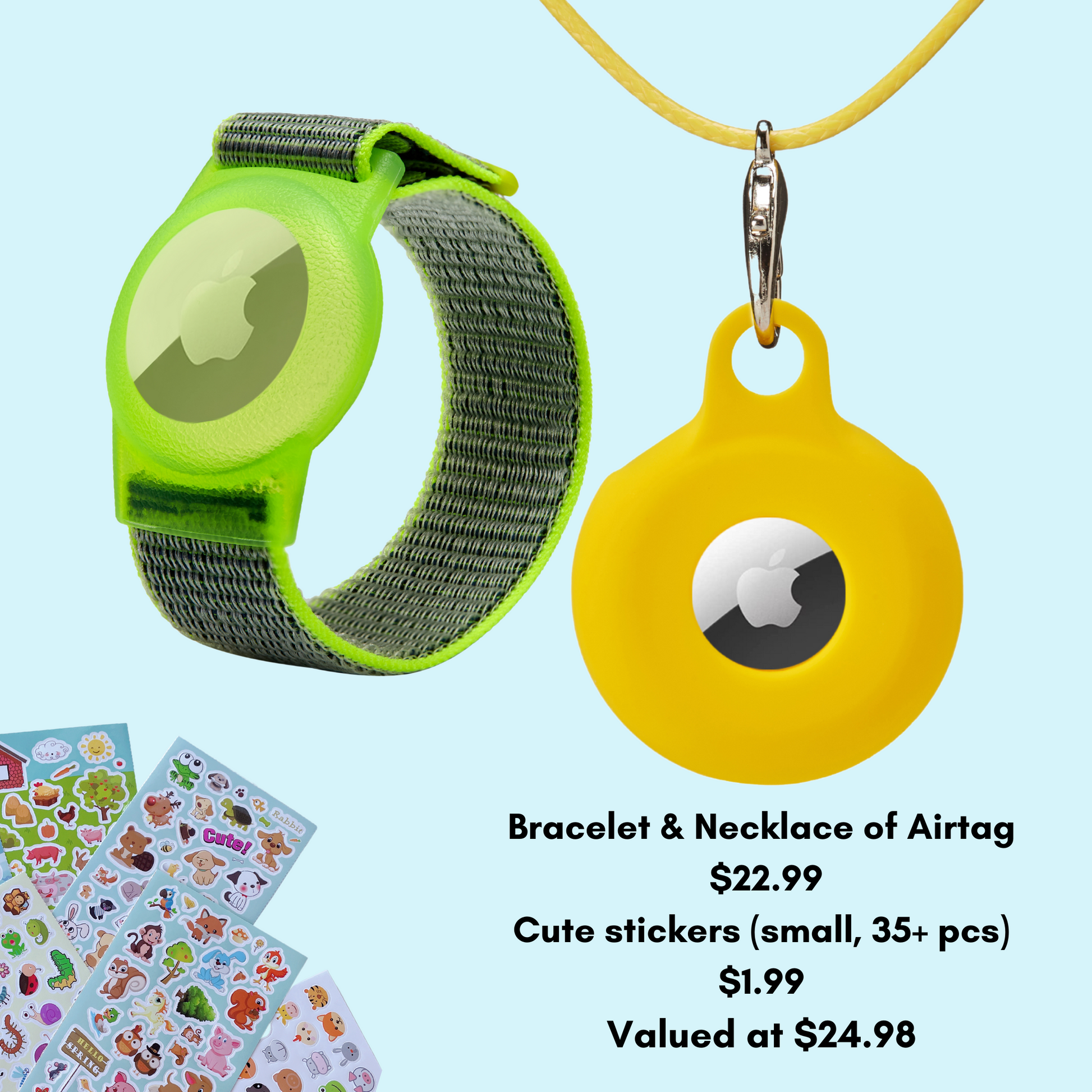 CHABAEBAE Airtag Necklace & Airtag Bracelet For Kids, Air Tag Anklet For Toddlers, Plus Stickers